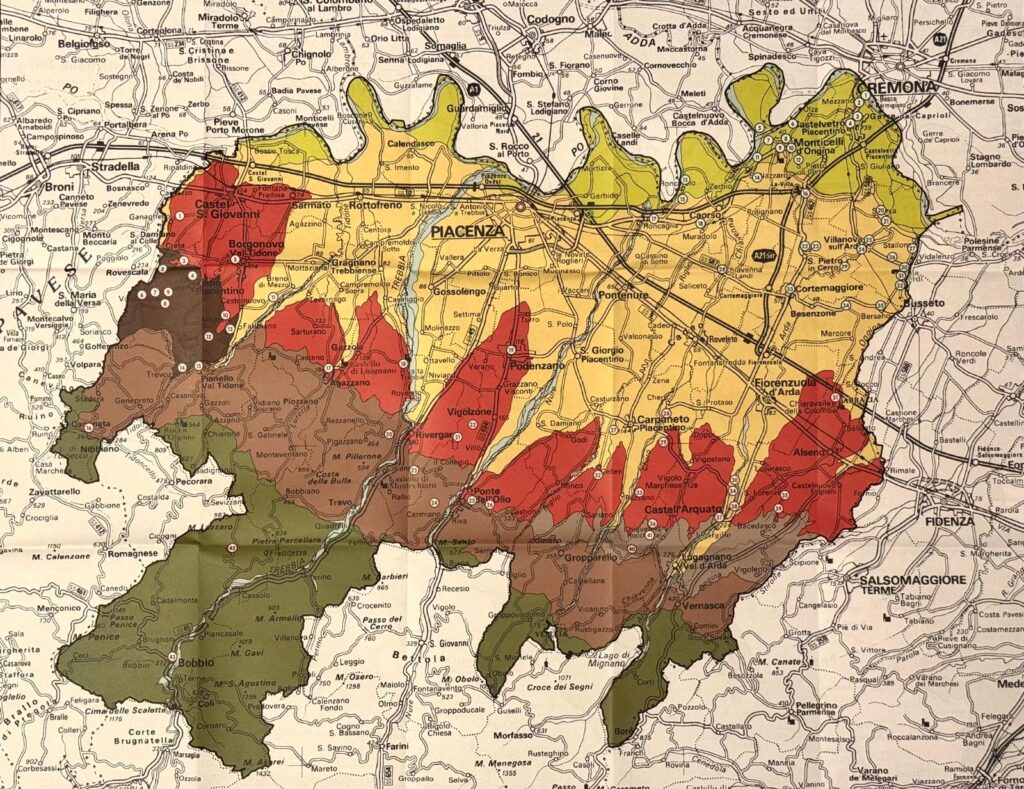 I Colli Piacentini sono tra l’altro un mosaico di valli e microclimi: le quattro valli disegnano un paesaggio vario, in cui i terreni alternano argille, sabbie e marne calcaree. È proprio questa diversità geologica a offrire p.es. alla Malvasia la possibilità di esprimersi in varie sfumature: più fresca e fragrante nelle terre argillose, più minerale e complessa nei suoli sabbiosi ricchi di fossili marini, più morbida e vellutata nelle antiche terre rosse. Il clima, con estati calde e ventilate e notti che si fanno fresche, permette di preservare la componente aromatica del vitigno, conferendo al vino profumi intensi di fiori bianchi, frutta matura e agrumi. Nel 2013, un progetto di ricerca dell’Università Cattolica del Sacro Cuore di Piacenza ha individuato e mappato sette diverse “terre” vitivinicole in base alle caratteristiche geologiche dei suoli, superando la tradizionale lettura per vallata e offrendo una nuova visione della viticoltura locale.